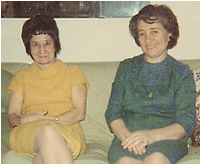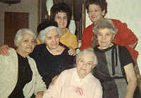 <<< Here's my maternal grandmother (in pink) with her sisters Louise, Annunciata Carmella, niece Rose and daughter Eve (my mother). |