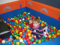Mommy, Tommy and Aunt Lori at cousin Aiden's birthday party.