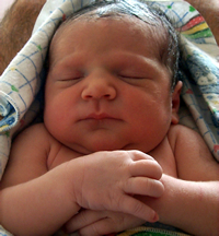 Our little girl was born yesterday (5/18/05) at 1:30pm PDT on a beautiful Oregon spring day! The labor went smooth and quick and aside from a minor tear, Randi and baby are happy and healthy. Shes 6lbs 9oz, 20 long and beautiful all over! We havent decided on her name yet, but we are calling her Rosie! Corah is so happy to be a big sister, and we are all happily nesting at home. Hope you get the chance to meet our little bundle soon!