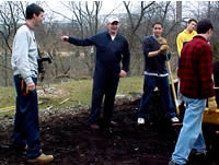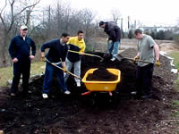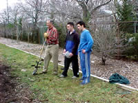 Brother Peter (center) and his volunteer crew from Chaminade. |